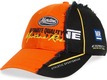 Spliced like a pit-lane collage, this cotton-twill baseball cap fuses high-contrast panels with tactile seams then fires up the crown with vivid sport-born embroidery.