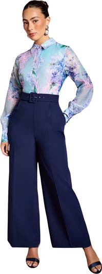 Step into elegance with our Collared Wide Leg Belted Jumpsuit. Perfect for occasionwear, it features a stylish collared neck and a flattering wide-leg design.