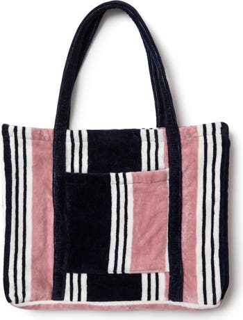 A roomy companion for beach trips, the College Stripe towelling bag is crafted from 100% cotton in the same bold stripes as the towel. Sturdy yet soft handles make it easy to carry, while the yarn-dyed fabric keeps its color wash after wash. Durable, practical, and made for long summer days.