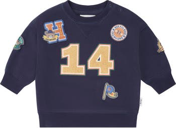 This cosy, retro-style fleece sweatshirt is made from the dreamiest organic cotton that feels like getting a big hug from your best friend. It features collegiate patches embroidery and comes in a cool block colour design.