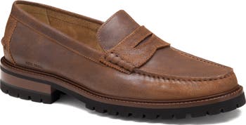 A toothy lugged sole puts an edgier spin on this classic penny loafer featuring an ultralightweight TRUFOAM®-cushioned footbed and a hand-sewn moc toe.