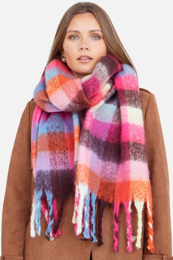 Elevate your winter wardrobe with this striking color block scarf, expertly crafted from sumptuous fluffy fabric. The bold geometric design combines contrasting hues for contemporary style, while the luxuriously soft texture provides exceptional warmth and comfort. Perfect for layering over coats or dresses, this versatile piece transitions seamlessly from casual to sophisticated occasions.