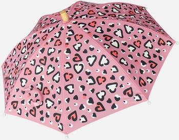 Make rainy days magical with this pink umbrella featuring an allover heart print that changes color when it gets wet! Designed with eight sturdy panels and a smooth curved handle, this classy accessory combines fun innovation with everyday functionality. The lightweight polyester canopy provides reliable rain protection while revealing a playful transformation that kids will love watching again and again.