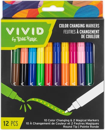 MARKERS: COLOR-CHANGING - Take your art to the next level with the Color-Changing Markers! MAGIC COLOR REVEAL: Layer the magical markers over base colors to unveil a hidden shade—each cap shows the surprise color for a fresh, unexpected effect every time you draw. This set includes ten vibrant color markers, plus two color-changing markers that add an exciting twist to your creative projects. 2 COLOR-CHANGING MARKERS: Special markers create dynamic color shifts with every stroke, adding movement and excitement to your doodles, drawings, and designs for truly eye-catching results. Watch as the color transforms with every stroke, creating fun, magical effects. These markers are perfect for anyone looking to experiment with new techniques and add dynamic color transitions to their artwork. Includes 10 color markers and 2 color-changing markers and creates dynamic color transitions with every stroke. Fun and magical way to enhance your artwork and perfect for journaling, mixed media, and creative projects. Conforms to ASTM D-4236 and contains 10 color markers and 2 color-changing markers.