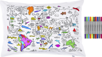 A round-the-world learning adventure with so much to color-in and discover! Kids will love the doodle world map pillowcase. They can color-in as they learn through imaginative and creative play.
