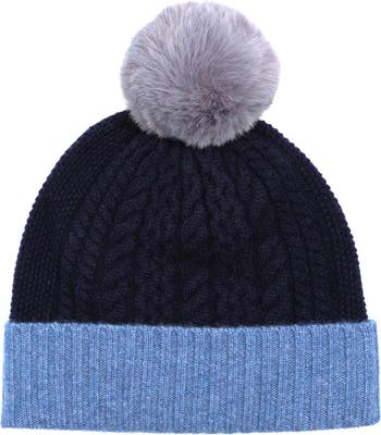 Colorblock Cable Pom Beanie — A playful nod to tradition, this beanie pairs the classic charm of cable knit with bold colorblocking and a soft pom topper. Spun from a luxurious wool-cashmere blend, it brings warmth, whimsy, and refined texture to brisk days.