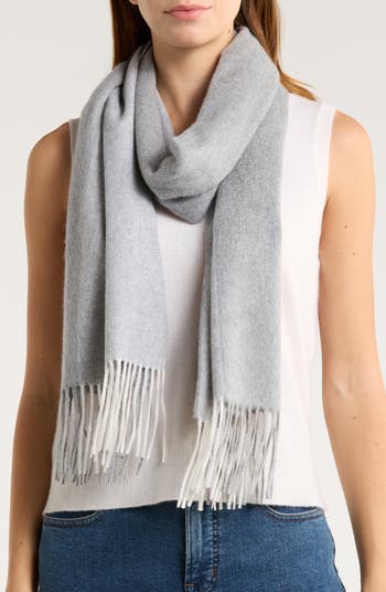 A cleanly colorblocked design defines this sweeping scarf that's fashioned from fine cashmere and finished with a generous fringe.