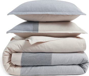 This comforter and shams set made from new and recycled cotton brings serenity to your bedroom decor with colorblock patterning rendered in restful hues.