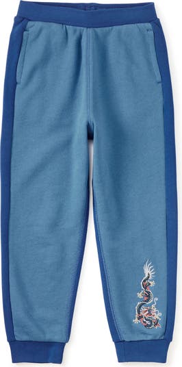 These cozy colorblock joggers strike the perfect balance between sporty and stylish. The standout feature is the embroidered dragon detail near the ankle, a nod to bold and mythical artistry. Crafted from soft, breathable 100% cotton French terry, they feature an elastic waist with an adjustable interior drawcord for all-day comfort and a customizable fit. Thoughtful design elements like on-seam pockets and a back patch pocket make them practical for everyday adventures. Pairs effortlessly with the matching sweatshirt for a fun coordinated look.