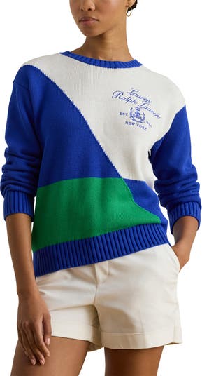 Embroidered with a signature crest at the chest, this combed-cotton crewneck sweater channels nautical heritage with its colorblocked design inspired by classic sailing flags.