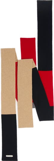 Knit with four different ends for wearing versatility, this tubular-knit intarsia scarf creates blocks of color in warming merino wool yarn.