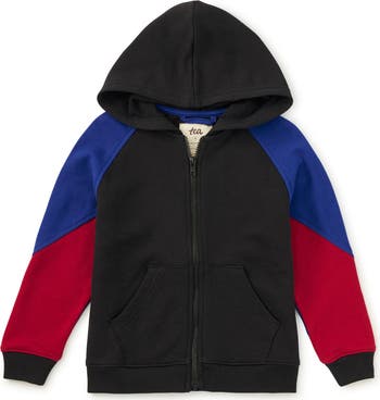 Color, comfort, and cool come together in this dynamic zip-up hoodie. Crafted from soft 100% cotton French terry, this easy-fitting hoodie features eye-catching colorblock sleeves in bold hues and thoughtful details built for durability. We've included a back neck locker loop and interior neck tape for long-lasting wear, plus a sewn-in name tag so it's ready to pass down.\nLove a matching moment? Pair it with the coordinating joggers for a head-to-toe look that's as fun as it is functional.