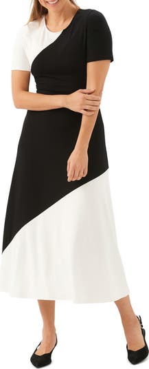 Stark, angular colorblocking in classic black and white emboldens this jersey A-line midi that's ideal from day to night.