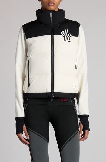 Part cardigan, part puffer, this colorblocked style offers lightweight warmth via a combo of a down-filled quilted core and collar plus stretch-fleece sleeves.