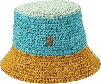 A bold colorblock and signature eagle head ensure you stand out in this structured bucket had woven from raffia straw.