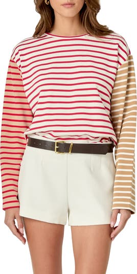 Colorblock Stripe Long Sleeve Cotton Blend Top