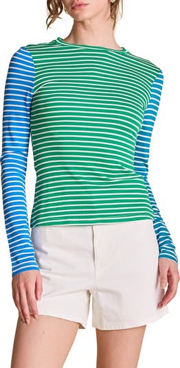 Take it easy in this '90s-inspired T-shirt made with color-blocked stripes and a fitted silhouette.