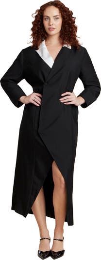 Make a power move in this colorblocked blazer maxi dress that fuses sharp tailoring with bold drama. A double-breasted front and thigh-high slit command attention with confidence.