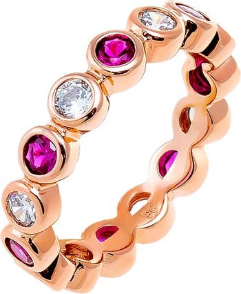 Add a vibrant pop of color to your look with Adina Eden's Colored CZ Bezel Eternity Band. Crafted from durable brass and elegantly plated in 14K gold, this ring features a continuous row of bezel-set cubic zirconia stones in striking shades of emerald green, blue sapphire, and ruby red. Each 3mm stone sparkles with brilliance, creating a stunning, multi-colored effect around the band. Available in sizes 6 to 8, this eternity band is perfect for stacking or wearing solo as a bold statement piece, adding a touch of luxury and color to any jewelry collection.