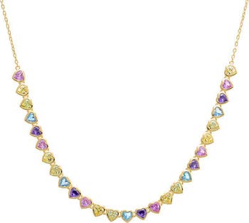 Colored CZ Bezel Hearts Necklace