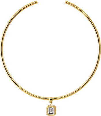 Colored CZ Emerald Bezel/ Solid Tube Open Collar Pendant Necklace