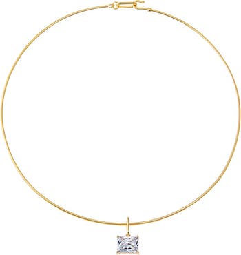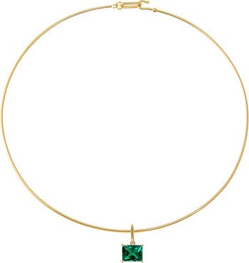 Colored CZ Emerald Charm Solid Thin Wire Choker Necklace