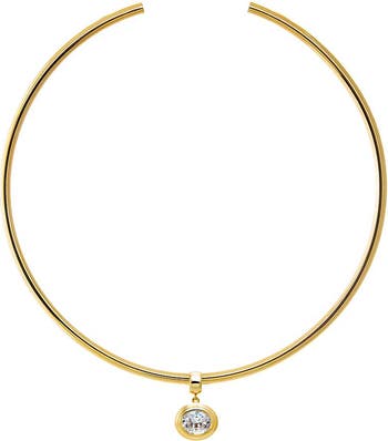 Colored CZ Oval Bezel/ Solid Tube Open Collar Pendant Necklace