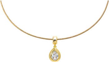 Colored CZ Pear Bezel Pendant Omega Chain Necklace