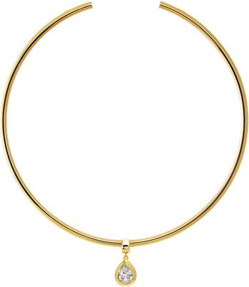 Colored CZ Pear Bezel / Solid Tube Open Collar Pendant Necklace