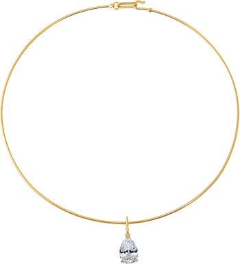 Colored CZ Pear Charm Solid Thin Wire Choker Necklace