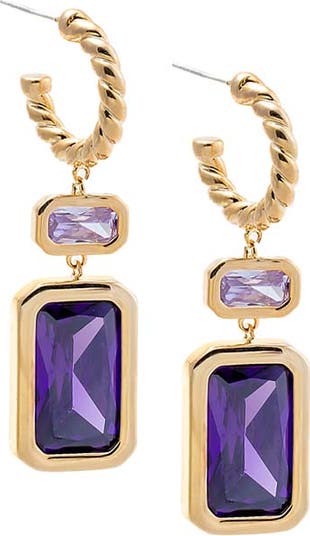 The Colored Elongated Bezel Emerald Drop Hoop Earring by Adina Eden is your next go-to Earrings set for layering and styling. This stylish trendy earrings set offers subtle glam in Purple and Topaz Yellow to match your signature style. When your style shifts from soft to sharp, this effortless layer adapts to your mood, your outfit, and your pace—no questions asked. Match this gold plated earrings set with selections from the Earring Combo Set collection for a finished outfit that feels totally you. The more you wear it, the more it becomes your favorite.