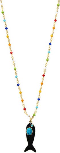 Add light and motion with the Colored Enamel /Turquoise Fish Charm Extra Long Necklace by Adina Eden, a dynamic Necklace built to shine. Minimalist but never boring, this necklace for women is available in Red, White and Black to elevate your everyday. For days that start early and end late, this piece adapts to your pace and your style—one detail, unlimited versatility. Stack this gold plated necklace with styles from our Charms & Pendants collection to build a signature look you'll love. Wear it once—it proves its value from the very first outfit.
