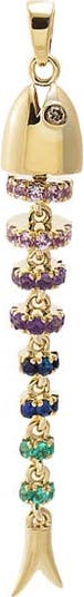 Colored Fish Bone Drop Charm 14K