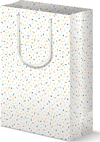 Brighten any celebration with this colorful confetti gift bag, designed to elevate your gifting experience. Crafted with durable, scuff-resistant matte lamination and premium materials, this bag is made to impress and reuse for many occasions.