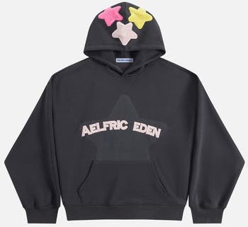 This pullover hoodie highlights a colorful Eden Star design with a fuzzy star texture that brings depth and tactile detail to the look. The vibrant pattern adds a bold visual element, while the soft fabric construction ensures lasting comfort. Designed with a relaxed silhouette, it balances everyday wearability with standout style. Perfect for layering or as a statement piece, this hoodie combines playful energy with modern streetwear appeal.