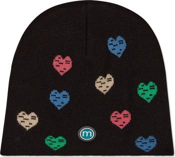 Warm her head and her heart with this cute and cozy girls' beanie. It comes in a breathable blend featuring silky-soft rayon. It stretches for snug custom fit and ear-protecting coverage. And it's covered with colorful hearts, knit right into the yarns for fade-resistant richness.