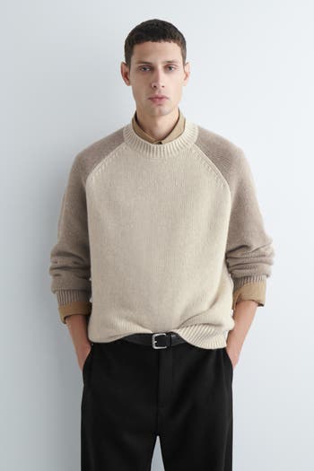 This season the menswear team renew the classic cashmere sweater with a laid-back appeal. This piece is crafted from luxuriously soft Good Cashmere Standard® yarn and designed with a relaxed shape, crew neck, and subtly color-blocked sleeves.