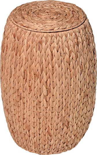 - This storage stool has a beautiful natural tone from its hyacinth weave, and a white linen lining, adding a coastal touch to any space; crafted by artisans, the color can be slightly different than shown