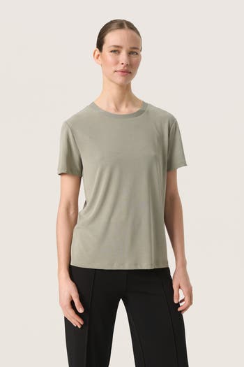 The Columbine T-shirt is the perfect basic piece to add to your everyday wardrobe. It has a crew neck and a regular fit, and it comes down to the hips. The sleeves are short with a straight fit, and the T-shirt is made in a soft and stretchy jersey fabric.