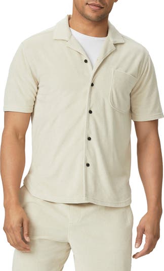 Dial up your relaxed off-duty look in the comfortable cotton-blend terry of this camp shirt that'll make you wish weekends were longer.