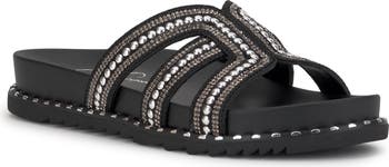 Sparkling studs and crystals add an extra touch of glamour to this outfit-refining slide sandal.