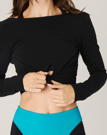 Plunge it. Flip it. Cinch it. The Combo Long Sleeve works both ways with a dramatic neckline and adjustable waist ties—engineered for versatility with edge. Made from a cotton/spandex blend for the perfect mix of comfort and performance.