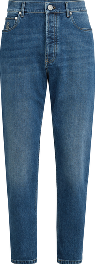 - Metal button closureFront pockets with watch pocketBack patch pocketsPlain hemIconic fit: the fit is characterized by slightly high-rise proportions with a regular design along the leg