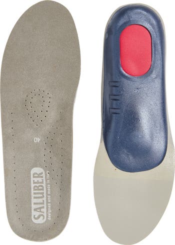A soft Alcantara® top cover and shock-absorbing Poron® cushioning bring breathable comfort to this supportive full-length insole designed with targeted arch and metatarsal support.