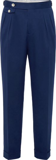 The cotton and cashmere gabardine is a refined fabric, characterized by a soft hand and a classic diagonal structure, enhanced by a small percentage of synthetic fiber to ensure an impeccable fit.