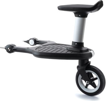 This wheeled board lets your toddler hop on and hop off anytime during your strolls as the board can attach to your stroller in just two clicks.The self-supporting click system features three positions: riding, half up or fully up. It also includes a detachable seat, so your child can comfortably sit or stand on the wheeled board as they travel, or simply use the white pull-out button above the wheel to click off the seat and store it in the under-seat basket of the stroller to save even more space. When not in use, fold it upright or easily remove and stow it away altogether.