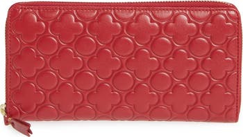 Sleek, zip-around wallet is updated in distinctively embossed leather.