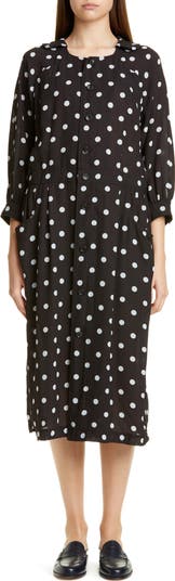 Smart dots pepper a relaxed button-front midi dress cut from airy georgette and constructed with easy raglan sleeves.