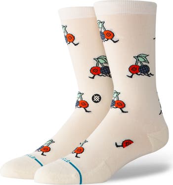 A bright pattern brings a fun finish to cotton-blend crew socks that are knit for comfort with built-in cushioning and arch support.