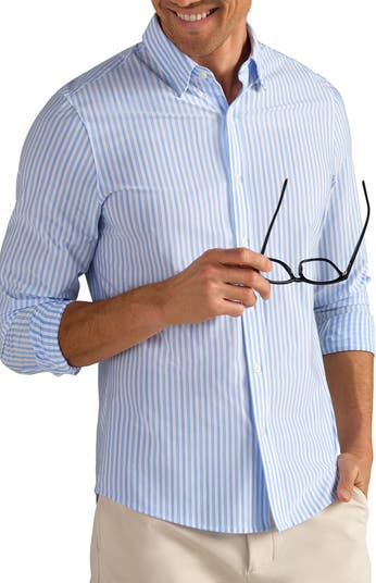 Stretchy, moisture-wicking fabric keeps you as comfortable as you look in a travel-ready button-up that resists both wrinkles and odors to help you stay fresh.
